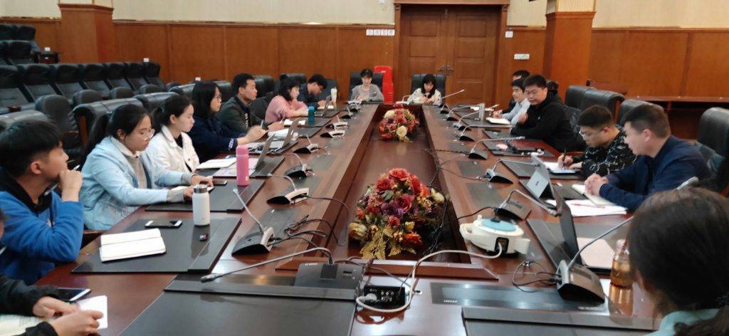4月3日下午,基地本学期第三次工作会议在文华公书林四楼模拟联合国会议室召开,基地主任陈荣卓教授、智慧社区研究院田静辉副院长、石子伟老师、陈鹏老师、闫雪菲助理以及基地博士、硕士参加。