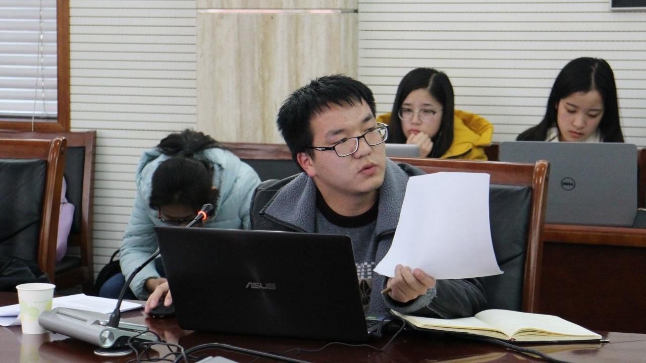 武汉轻工大学经济与管理学院副教授邓义对刘晔和张盈的汇报进行了精彩点评。他指出上述汇报分别从法学和经济学的视角聚焦于土地改革问题,土地改革是重要而典型的研究课题。从选题和研究视角来分析第一篇文章跳出泛泛而谈的视角,从一个全新的研究视角进行实证研究;且文章研究跳出定性分析,研究具有科学性,内容丰富饱满,逻辑系统清晰。第二篇文章在选题上具有较强的现实意义,内容细致、全面,分析透彻,尤其是对于制度梳理和实践探索的分析很有意义、是一个亮点。最后提出进行跨学科的角度进行分析能够扩展视野,上述汇报如果从社会学或经济学的视角做实践探索会有更丰富的成果。
