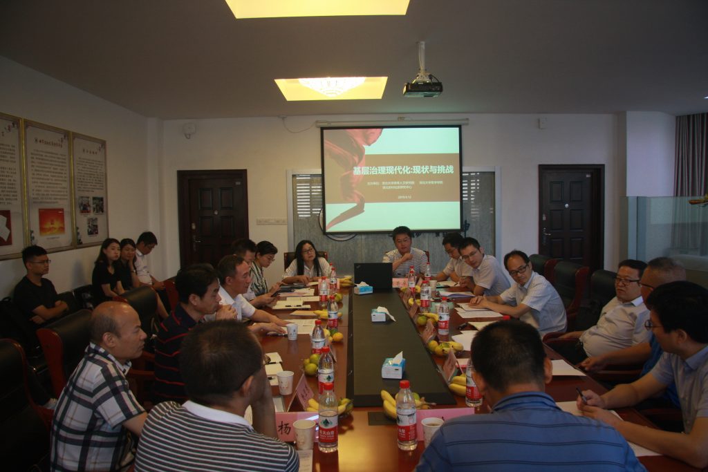 9月12日下午,唐鸣教授、陈荣卓教授受邀参加“基层治理现代化:现状与挑战”研讨会,本次会议由湖北大学高等人文研究院、湖北大学哲学学院、湖北大学农村社区研究中心联合主办,省政府研究室相关领导、湖北大学党委书记尚钢以及来自华中师范大学、湖北省社科院、湖北大学、湖北科技学院、湖北中医药大学等高校的30余位专家学者及学生参会。研讨会由湖北大学哲学学院党委书记戴茂堂教授主持。