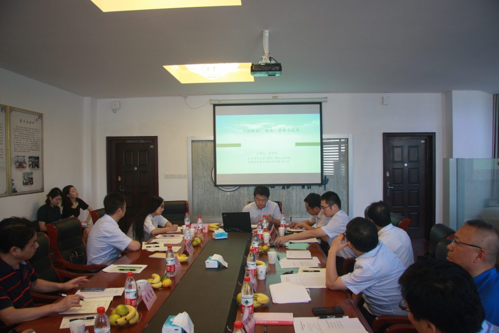会上,唐鸣教授结合中国基层治理的经验与探索从坚持制度自信、坚持党的基层组织和村居委会为中心、坚持政经分开的改革路径、坚持城乡融合发展方向、借助信息技术手段等方面展开,提出当前基层中备受关注和亟待解决的问题。基地主任陈荣卓教授紧扣“三治结合的乡村治理体系”,不仅总结提炼了目前理论研究的现状,而且引用案例分析了当前的实践探索,认为不同的治理空间里面,自治、德治和法治是可以独立运行的,彼此组合和融合的广度以及深度完全是要去根据事务的性质进行抉择,不可一概而论。最后,他强调,要因地制宜地选择不同的治理组合,形成最适宜的组合方式和最适宜的治理体系。