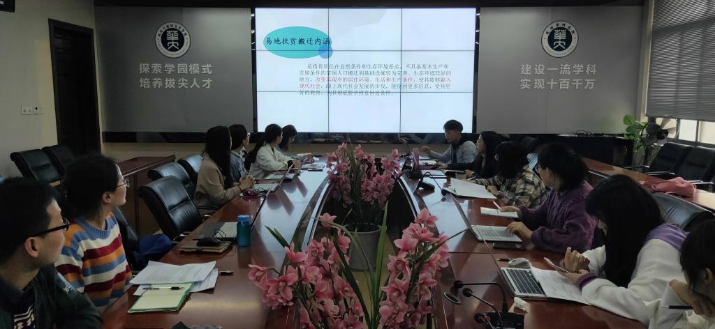 33115时,本学期第一次悦读·读书会在政治与国际关系学院309会议室召开。基地博士申鲁菁、刘亚楠、李梦兰以及部分硕士生和本科生参加会议,读书会主题为“易地扶贫搬迁政策执行问题研究”。