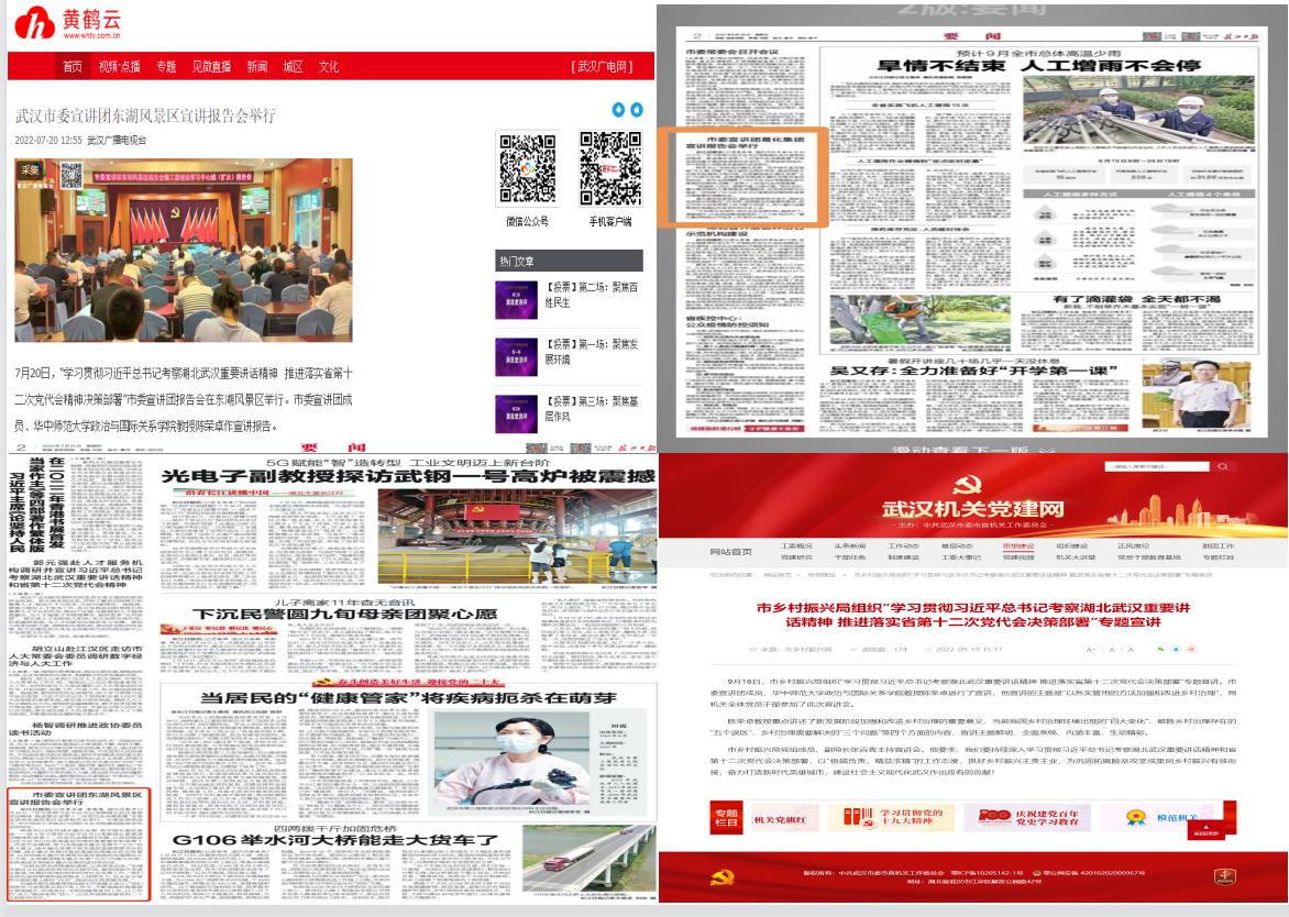 为深入学习贯彻习近平总书记考察湖北武汉重要讲话精神,推进落实省第十二次党代会决策部署,武汉市委宣讲团成员陈荣卓教授应邀于今年7至9月分别在东湖风景区、葛化集团、市乡村振兴局等单位开展系列专题宣讲,先后作宣讲报告五次。
