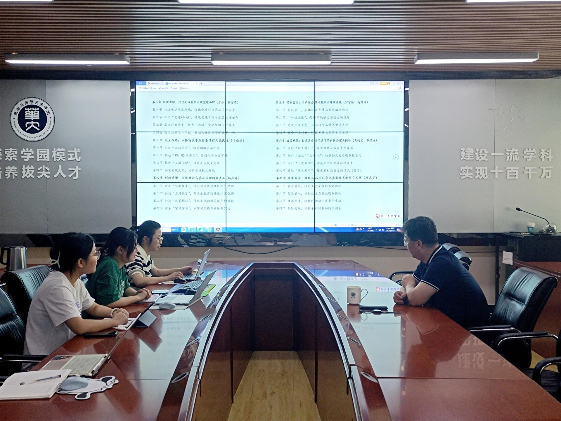 7月16日上午,陈荣卓教授在学院313会议室组织召开基地2023年春季学期第六次工作会议,新北区书稿全体撰写人员以线上、线下相结合的方式参加。