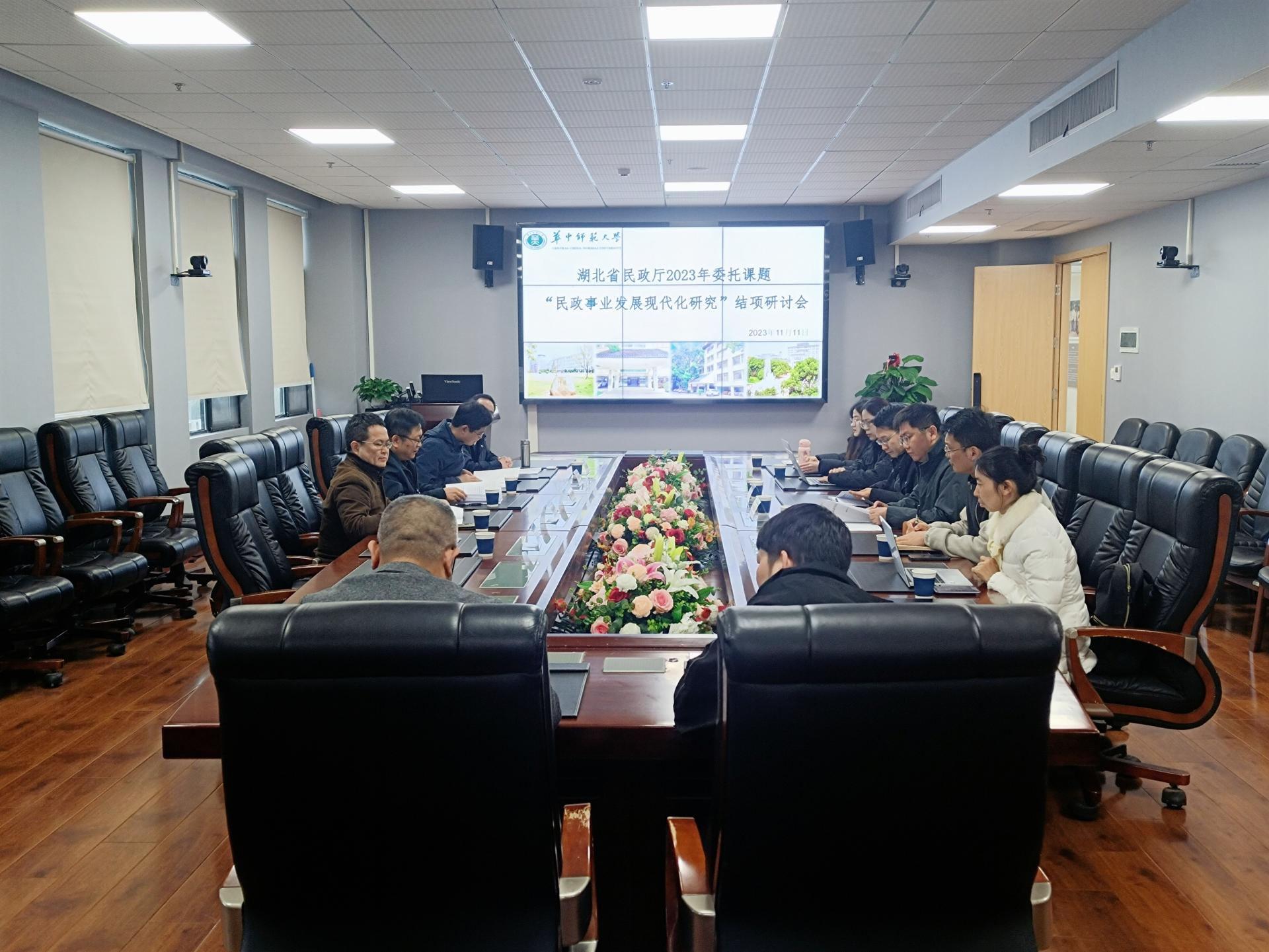 11月11日下午,陈荣卓教授主持的2023年“民政事业发展现代化研究”课题结项研讨会在文科科研楼1005会议室召开。湖北省委政研室二级巡视员肖玉明、湖北省政府办公厅秘书四处处长马争艳、湖北省政府研究室六处处长邵德艾、湖北省民政厅政策法规处处长曾东林、华中师范大学高质量发展研究院院长罗静教授、中南民族大学公共管理学院院长彭庆军教授出席。会议由湖北省民政厅一级调研员涂才江主持。