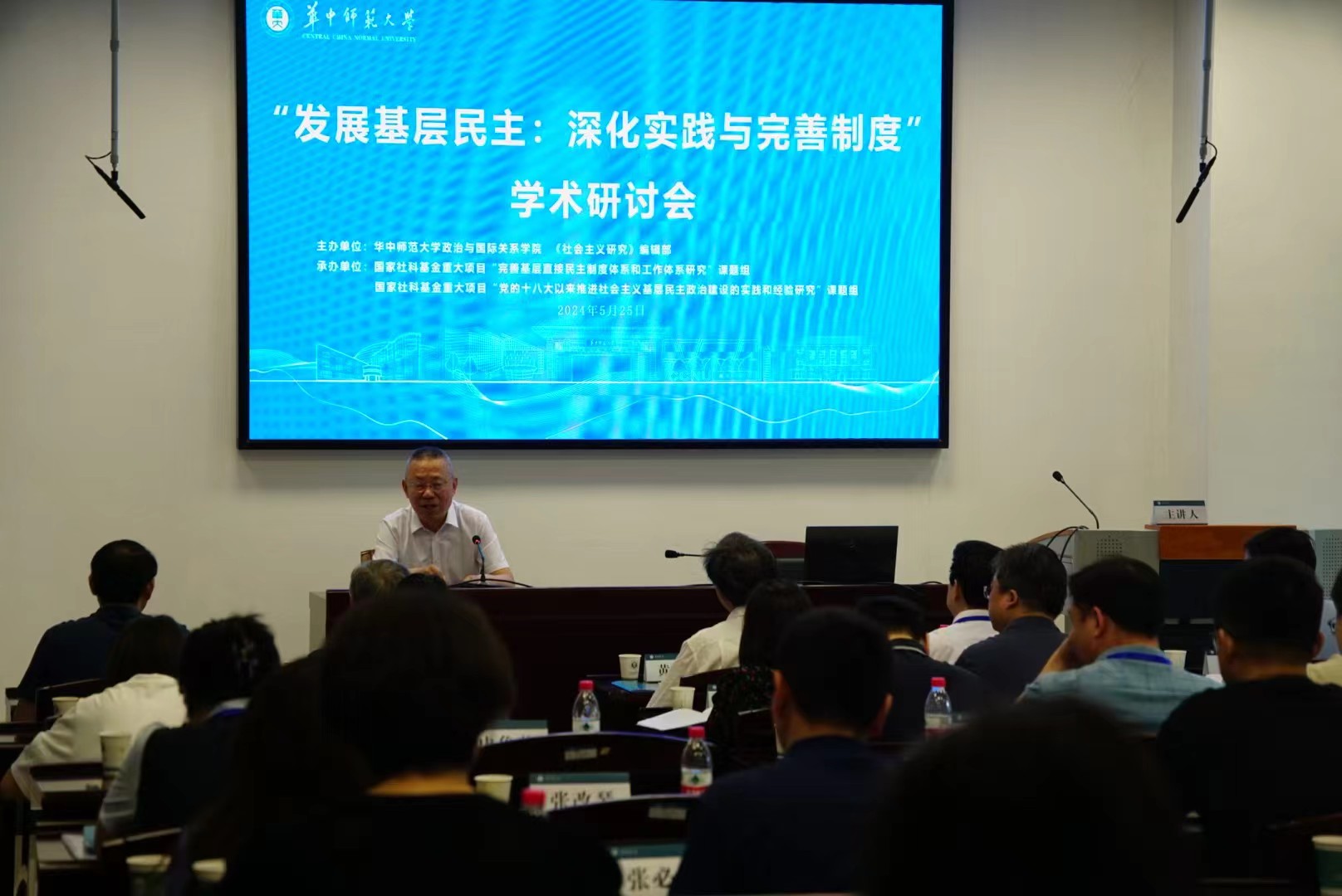 5月25日,陈荣卓教授与唐鸣教授应邀参加“发展基层民主:深化实践与完善制度”学术研讨会。本次会议由华中师范大学政治与国际关系学院和《社会主义研究》编辑部主办,国家社科基金重大项目“完善基层直接民主制度体系和工作体系研究”课题组和国家社科基金重大项目“党的十八大以来推进社会主义基层民主政治建设的实践和经验研究”课题组承办。北京市习近平新时代中国特色社会主义思想研究中心特约研究员、国家教育行政学院黄百炼教授、中国人民大学中共党史党建研究学院陈家刚教授、复旦大学特聘教授、复旦大学社会科学高等研究院专职研究员贺东航教授等百余位专家学者和硕博研究生参加。