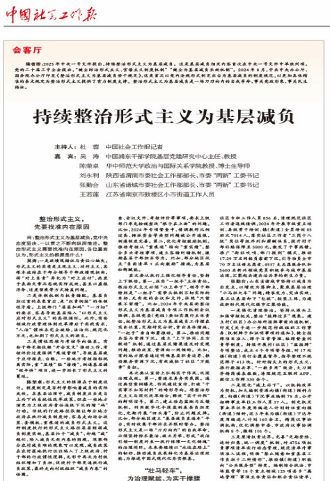近日,陈荣卓教授就持续整治形式主义为基层减负问题,接受了《中国社会工作报》的专题采访。专访文章刊发于《中国社会工作报》2025年2月26日第3版。