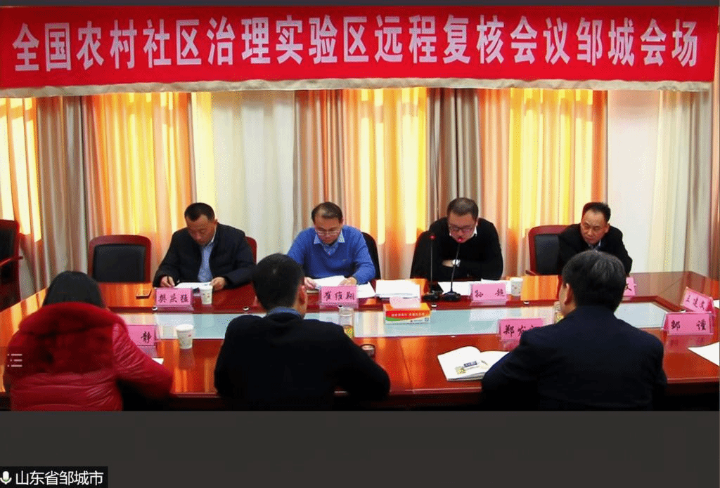 在山东省邹城市复核会议现场,山东省济宁市民政局基层政权建设和社区治理科科长、一级主任科员邹谨,邹城市委副书记、代市长王建文,市民政局副局长郑发河等同志参加会议。会上,王建文副书记围绕“完善农村社区服务体系,提升农村社区公共服务水平”实验主题,从实验区基本情况、实验方案和实验任务的总体完成情况、实验成效及下一步规划五个方面进行了汇报。接着,市民政事务中心副主任孙超等同志就实验区村级服务体系建设和部门工作职责等具体情况作补充说明。随后,专家组成员就农村服务体系运行和农村治理机制建设等情况进行提问点评。最后,陈荣卓教授进行总结与反馈,指出实验区需在阶段性任务完成的基础上,进一步提炼特色经验,加强农村社区专业化公共服务建设。