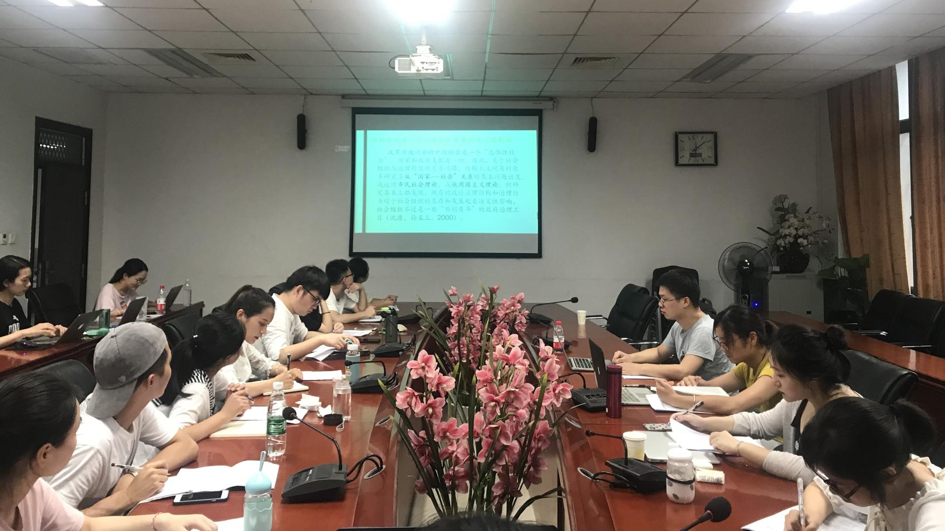 2018年7月8日下午,本学期第五次悦读·读书会在政治与国际关系学院309会议室召开。基地博士陈鹏、颜慧娟、申鲁菁、张改琴以及悦读·悦厚读书群的所有成员参加了此次会议。本次读书会主要分为主题汇报和实习结束的同学进行交流分享两个环节,会议由郑薇主持召开。