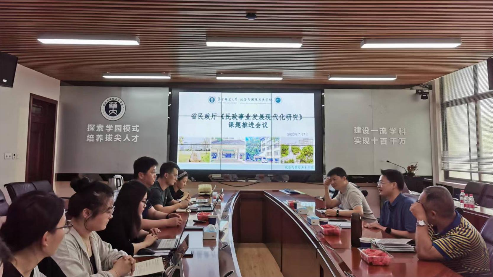 7月7日下午,陈荣卓教授在学院313会议室主持召开省民政厅“民政事业发展现代化研究”课题推进会。湖北省民政厅政策法规处处长曾东林一行3人、基地刘亚楠老师及部分在校博士参加。