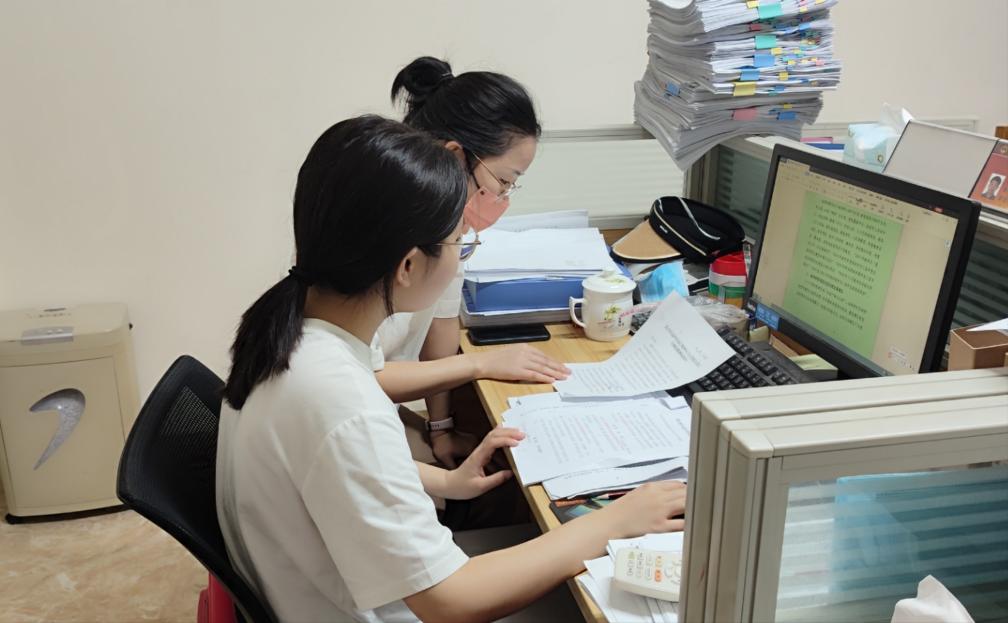 ▲基地成员在天涯区民政局社区综合服务中心商讨案例